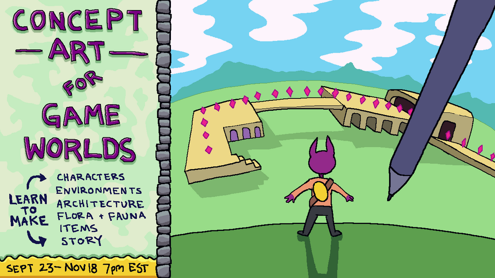 This is a nine week remote world-building class! We use game design principles as a way to structure the world through the eyes of a "player one" character. At the end of the class you will have an established world to use as a base for storytelling, game design, or any other creative endeavour that needs a unique setting.